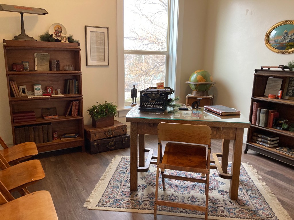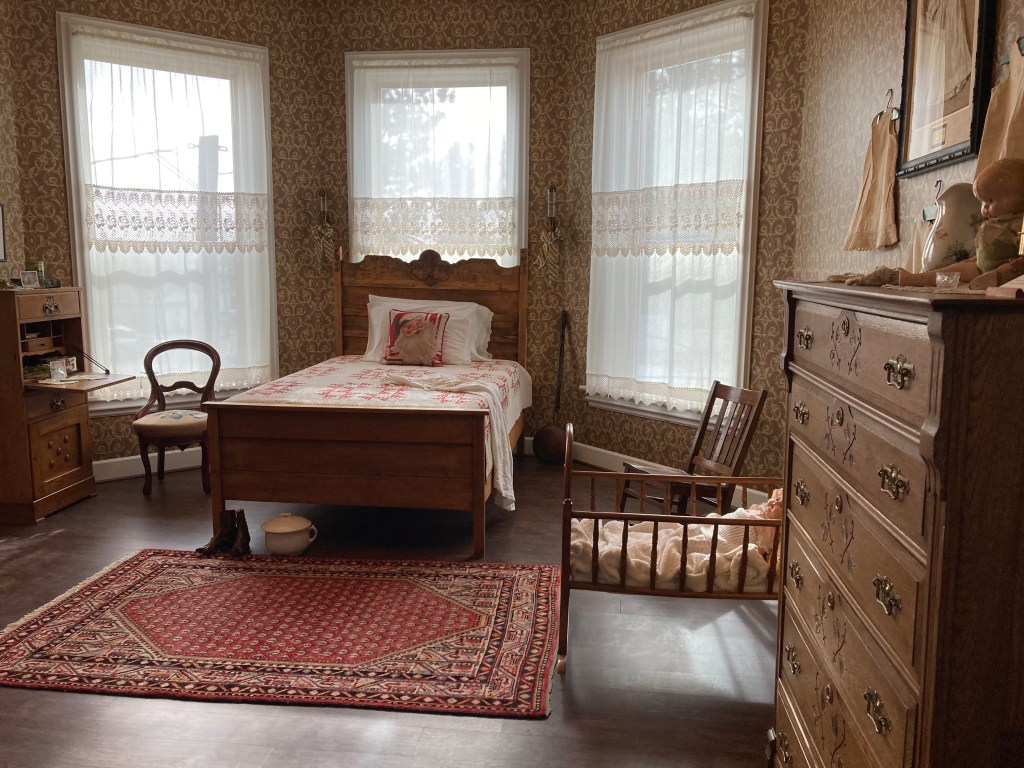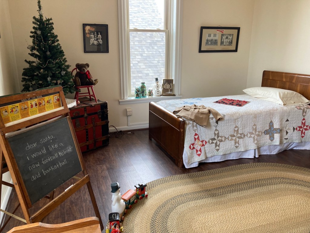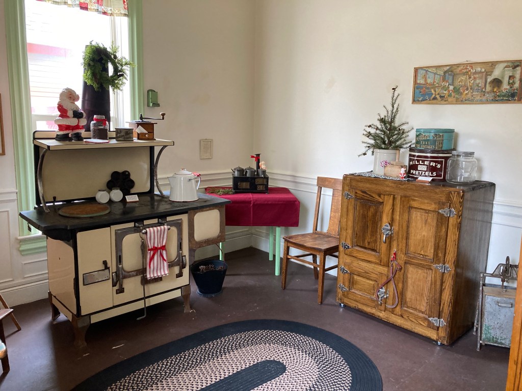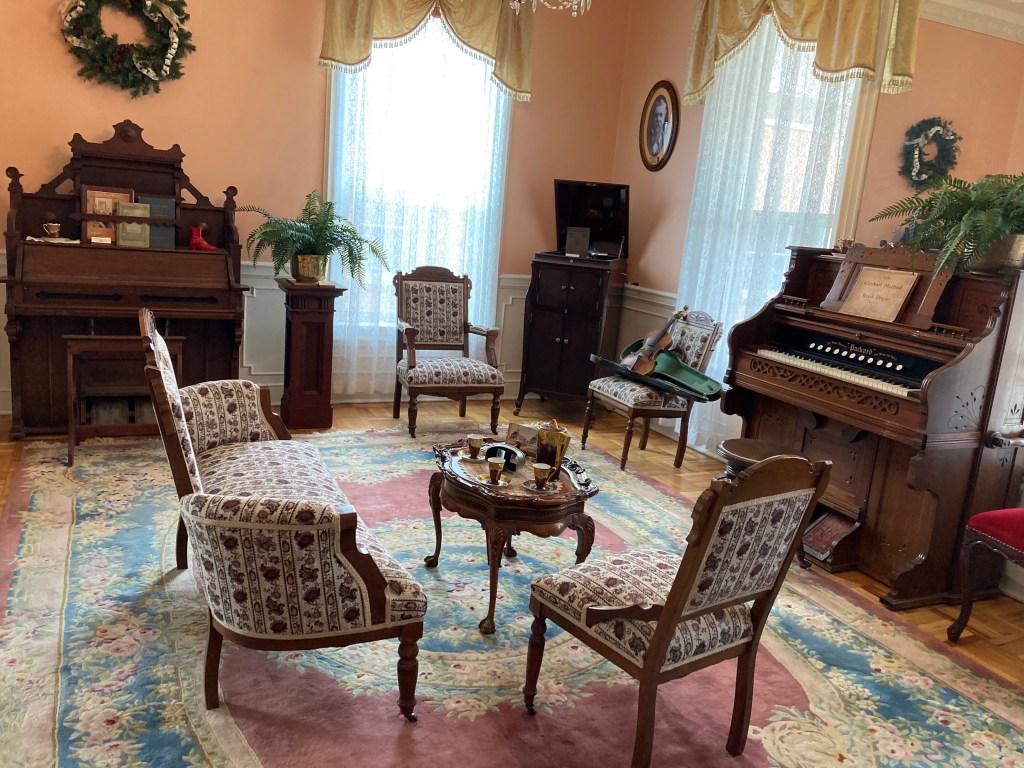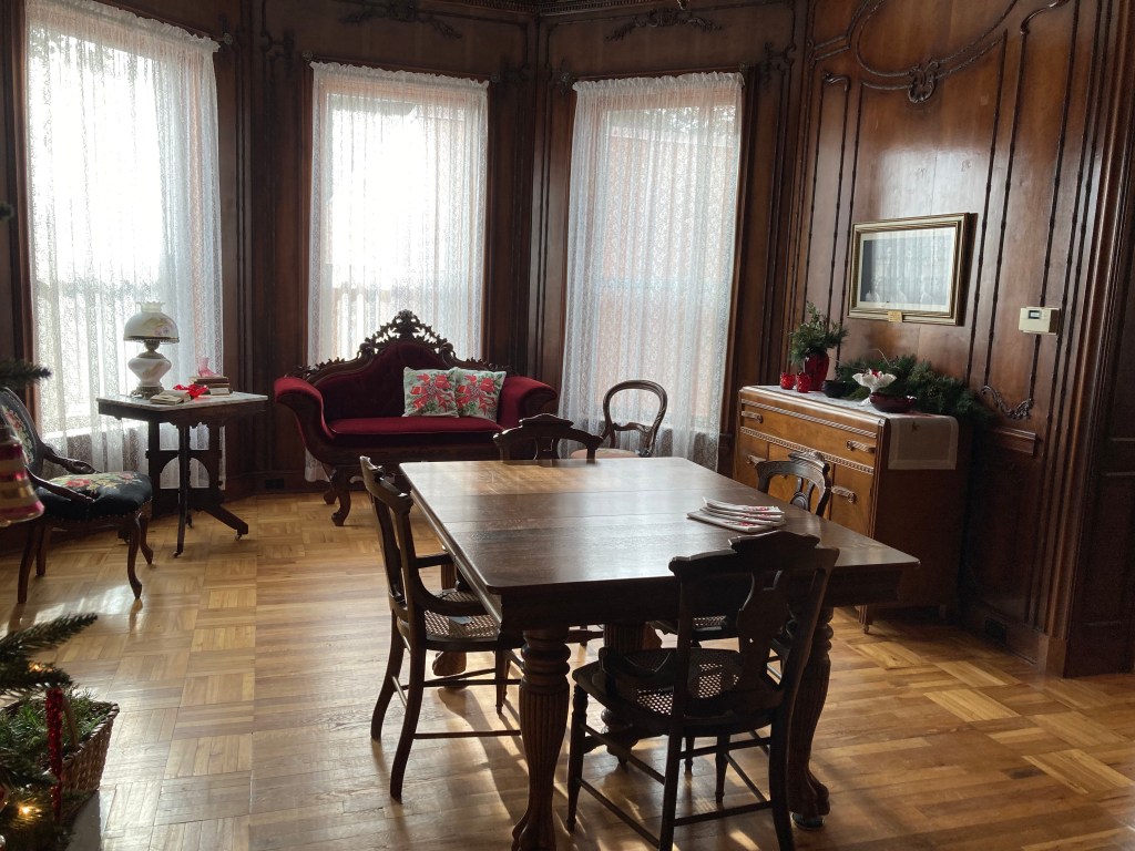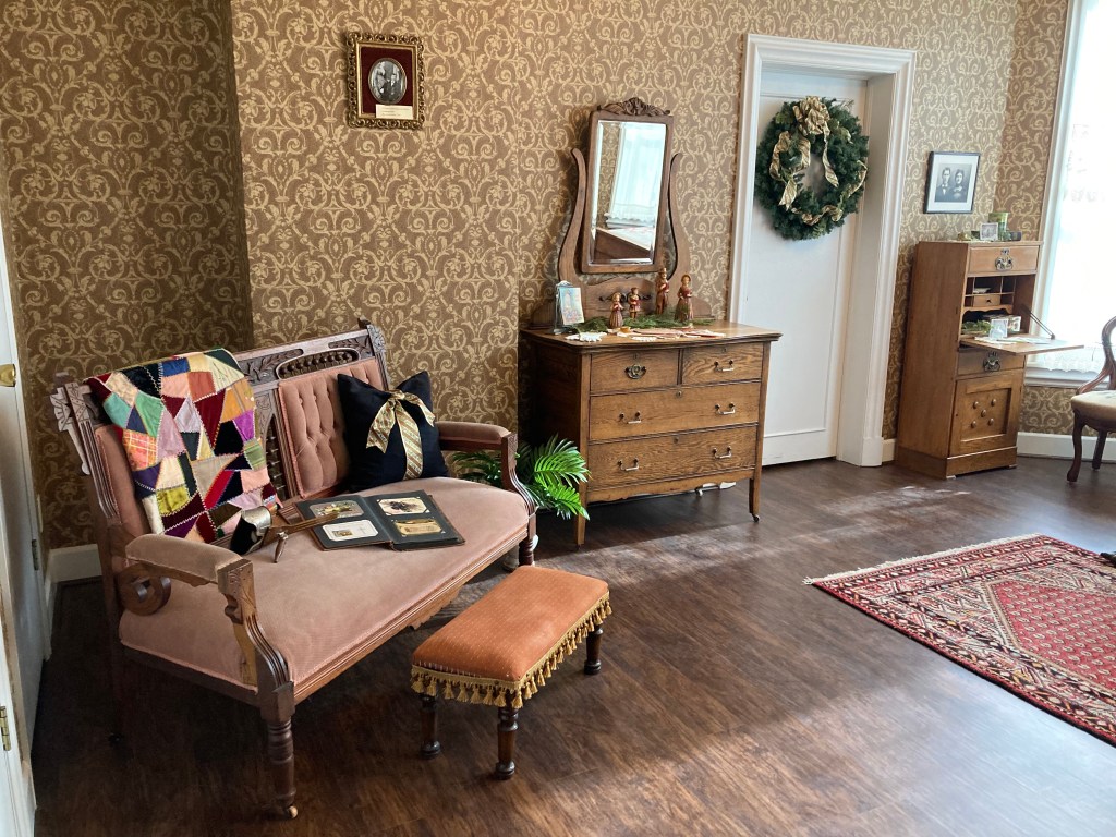 During 2022 many dedicated museum volunteers dug through the collections, sorted, planned, and updated the exhibits in the whole house. Now it is completed and decorated for the holidays. It looks wonderful! If you have not been through the A. J. Eaton Home and Carriage House Museum lately, we highly recommend you stop by. There is so much detail in each room, with carefully placed treasures to see and enjoy. Here is a quick photo tour.